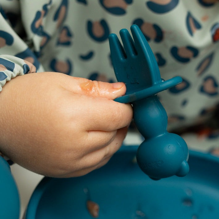 - Easy for little ones to use- Our dinky weaning baby utensils set has been carefully designed with little hands in mind! Our soft, silicone baby spoon and fork feature short handles for more plate-to-mouth success for your little one's grub.