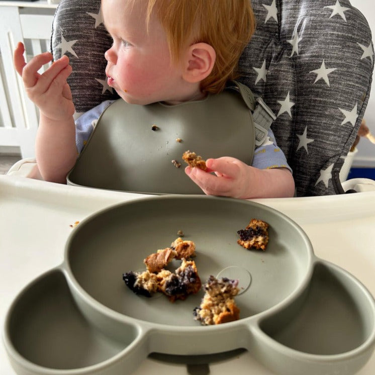 - Our sectioned, baby suction plate keeps hot food separate from cold and has a low profile, allowing your little one to clearly see and explore their meal choices. Our silicone, baby plate walls are thicker with a slight inward curve to help babies and toddlers scoop up their grub. Comes with silicone plate lid.